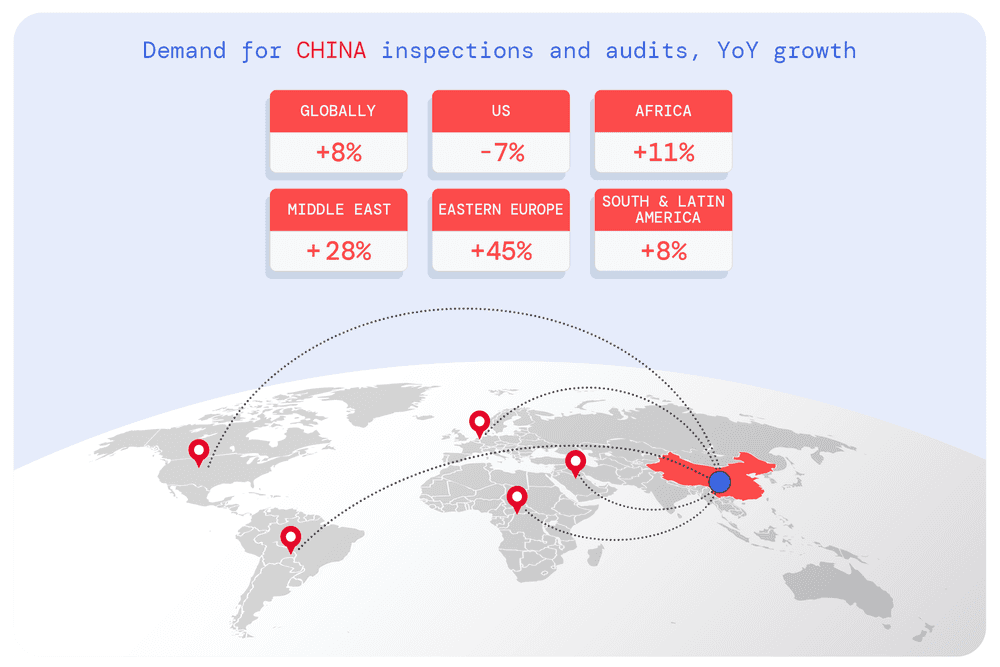 China’s buyer base is expanding even as Western sourcing shifts, QIMA data suggests. Despite a -7% YoY drop in US-based demand, global inspection and audit demand in China rose +8% YoY in Q1 2026, with emerging markets driving the growth: Africa (+11%), Middle East (+28%), Eastern Europe (+45%), and South and Latin America (+8%).